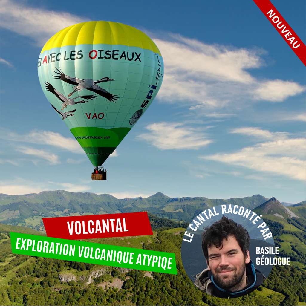 VolCantal en Montgolfière : Le volcan cantalien est le plus ancien d’Auvergne et le plus grand volcan d’Europe, un stratovolcan de 70 km de diamètre. Son passé tumultueux a laissé son empreinte. Les hauts plateaux basaltiques, les cirques et vallées glaciaires, une agriculture adaptée au relief et au climat. Découvrez ces paysages magnifique lors d’un vol unique et dont l’histoire est racontée. Une conférence en plein ciel.